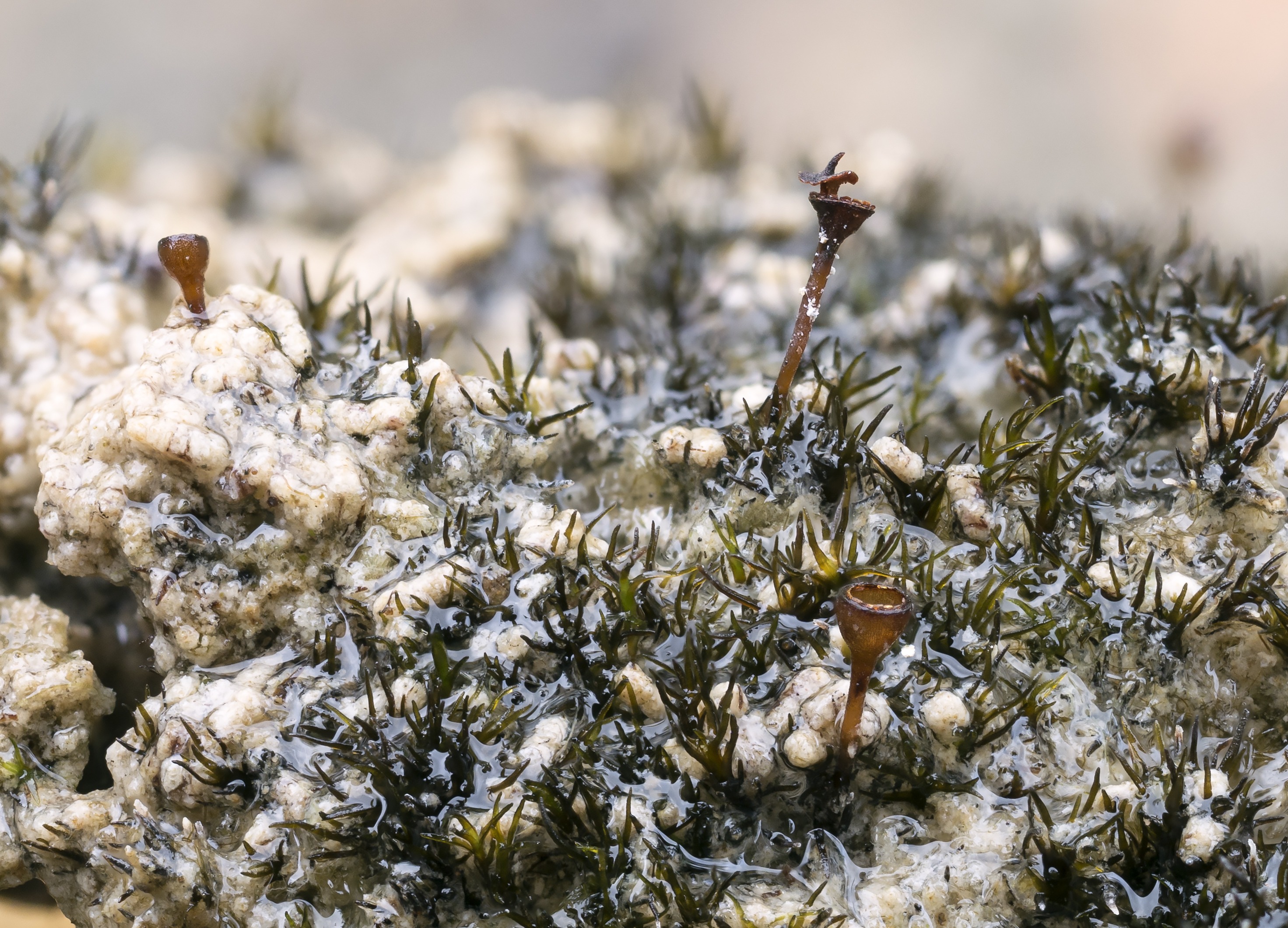 En av dagene under samlingen var vinden for sterkt til at vi kunne dra høyt til fjells. Denne dagen ble brukt nede i bjørkeskogen ved Måfå rett øst for Høydalsvatnet. Her finnes et større kalkområde som elva Bøvra renner tvers igjennom. Også her ble det gjort mange interessante funn og totallista for moser talte 200 arter denne dagen. Mest interessant var funn av frostklokkemose Encalypta brevipes. Denne arten ble funnet ny for fastlands-Norge under en tilsvarende workshop i 2015 og er derfor ikke inkludert på rødlista foreløpig. Videre ble det funnet flere andre rødlistede arter som begerblygmose Seligeria oelandica (VU), skiferbustehette Orthotrichum laevigatum, hårkurlemose Didymodon icmadophilus (VU), grassigd Dicranum angustum (VU), krølltustmose Tortula leucostoma (VU), knattmose Gyroweisia tenuis (NT), kalkflik Lophozia perssonii (NT), alpevrimose Tortella alpicola (DD) og gulltann-nikke Pohlia vexans (DD).